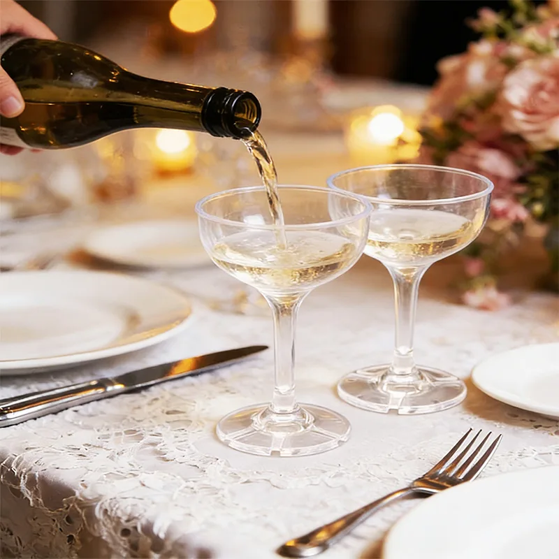 Ningbo Powerr's split-type 140 ml cocktailplastikglas bryder væk fra den traditionelle enkelt-formålsplacering af drikkeredskaber. Den er centreret omkring "scenetilpasning" og er specielt designet til bryllups-champagnetårne og store arrangementer. Gennem genialt design løser det ulemperne ved glasvarer og bliver et perfekt balancepunkt mellem ritualisme og praktisk.