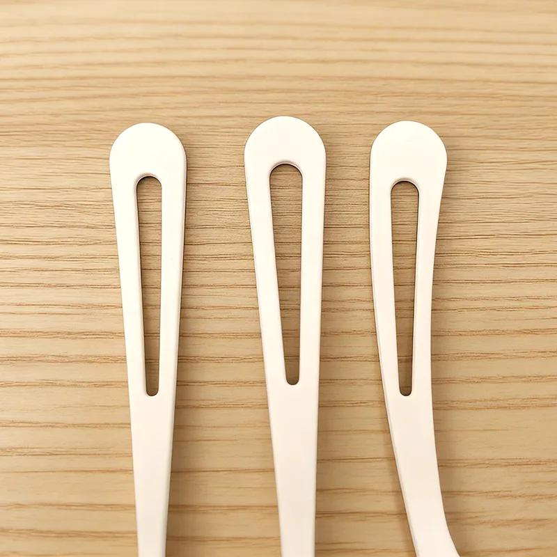 Miljøvenligt dråbeformet plastbestik har både varmebestandighed og holdbarhed. Kniv-, gaffel- og skestrukturen er stabil, gaffeltænderne er skarpe, og håndtaget er glat. Den kan nemt håndtere forskellige fødevarer såsom varme retter og desserter, hvilket giver en brugsoplevelse i overensstemmelse med traditionelt plastikbestik. Designet er enkelt og elegant med en ren hvid tone, velegnet til forskellige miljøvenlige cateringvirksomheder, temaarrangementer og familiespisescenarier. Det hule design ved halen er ikke kun et unikt designhøjdepunkt, men også praktisk for brugerne at holde og hænge, hvilket balancerer både æstetik og praktisk.
