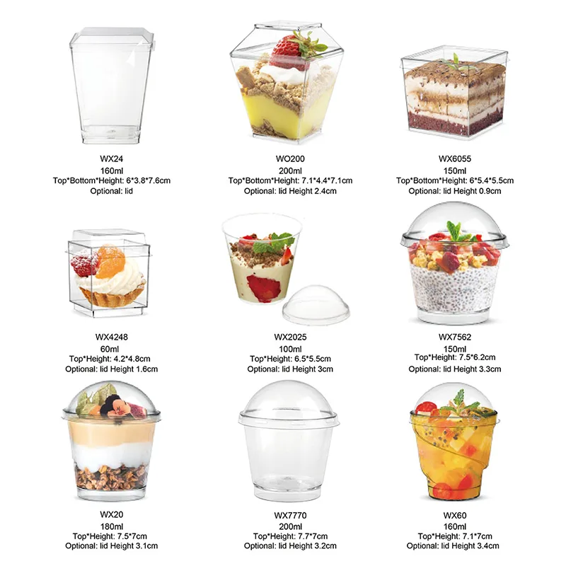 Mode specialformede dessert-plastikkopper er trendy genstande, som Ningbo Powerr Plastic Products Co., Ltd har fokuseret på at udvikle i de seneste år. De er lavet af fødevaregodkendte plastmaterialer. Og de har ingen lugt, kan modstå høje temperaturer og deformeres ikke let. Vores plastikkopper til dessert inkluderer forskellige stilarter såsom runde, firkantede, slidsede og andre kreative designs. De kan bruges til forskellige desserter og let mad såsom kager, mousse, budding, yoghurt, frugtsmoothies, is mv.